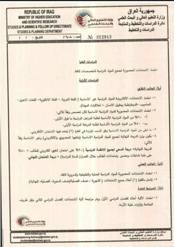 استنادًا إلى كتاب وزارة التعليم العالي والبحث العلمي المرقم بتاريخ ٢٠٢١/١/١٧م، تقرر