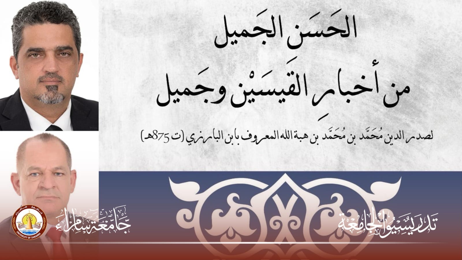 أصدر الأستاذ الدكتور (كمال عبدالفتاح حسن) والأستاذ الدكتور (محمد أحمد شهاب) التدريسيان في كلية العلوم الإسلامية بجامعة سامراء، كتابًا جديدًا عن دار ذخائر التراث، بعنوان \\\”الحسن الجميل من أخبار القيسين وجميل\\\”.