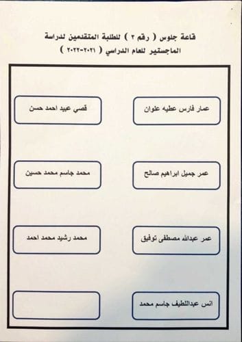 جامعة سامراء – التربية البدنية وعلوم الرياضة تعلن خارطة جلوس المتقدمين للدراسات العليا