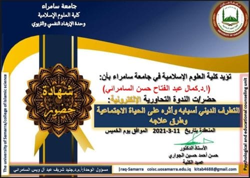 ناقش الأستاذ الدكتور صباح علاوي خلف -رئيس جامعة سامراء- أُطروحة دكتوراه في كليّة التّربية للعلوم الإنسانيّة في جامعة الموصل.التي حمَلت…