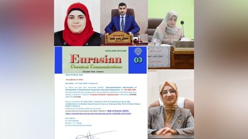 قدم اساتذة قسم الكيمياء في كلية التربية بجامعة سامراء، بحثا علميا مهما بعنوان “Spectrophotometric Determination of Phenobarbital in Pharmaceutical Preparation Using Gold Nanoparticles”، الى مجلة Eurasian Chemical Communications، وهي مجلة متخصصة بالكيمياء، ومصنفة ضمن كلاريفيت، وتصدر عن دار سامي للنشر.