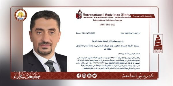 اختيار الأستاذ المساعد الدكتور جنيد شريف عبد عضوًا في الهيأة الاستشارية لمجلة سليمان الدولية