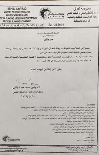 وجاء ذلك وفقا لكتاب الوزارة الصادر عن دائرة الدراسات والتخطيط والمتابعة، المرفق طياً