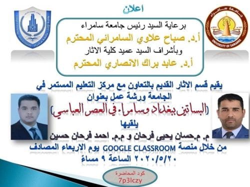 اعلان ورشة عمل: البساتين ببغداد وسامراء في العصر العباسي