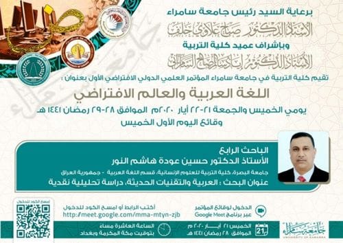 تقيم كلية التربية في جامعة سامراء المؤتمر العلمي الدولي الافتراضي الأول بعنوان