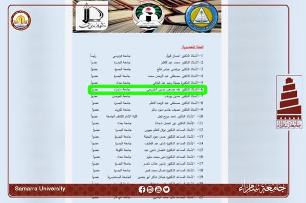 الأستاذ الدكتور طه مصحب الخزرجي عضو لجنة تحضيرية لمؤتمر دولي