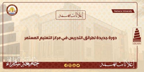 يُعلن مركز التعليم المستمر في جامعة سامراء عن دورة طرائق التدريس السّابعة والستين.
