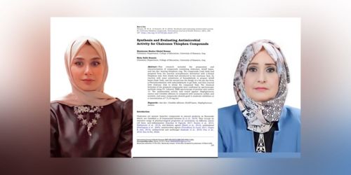 ميمونة مظهر خلف، حمل عنوان ” تحضير وتقييم النّشاط المضاد للمايكروبات من جالكونات الثايوفين “، وذلك في عددها الثاني الذي صدر مؤخرًا.