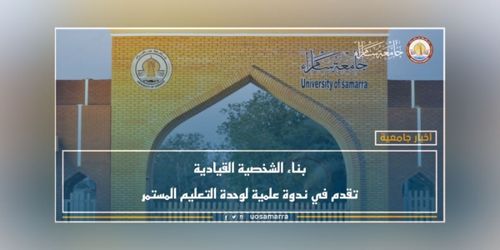 تنظم وحدة التعليم المستمر في كلية التربية بجامعة سامراء، ندوة علمية بعنوان ” بناء الشخصية القيادية “، والتي يقدمها الدكتور مراد احمد خلف، والسيد مؤيد عبدالرحيم محمد، والسيد علي عماد سالم صالح.