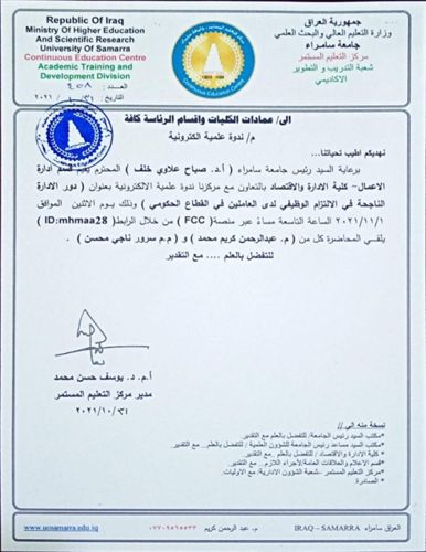 جامعة سامراء تعلن عن إقامة ندوة علمية حول إدارة الأعمال