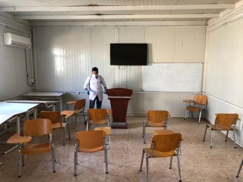 جامعة سامراء تقوم بحملة تعفير وتهيئة القاعات الدراسية والأقسام الداخلية لطلبة الدراسات العليا استعداداً لإداء الامتحانات حضورياً