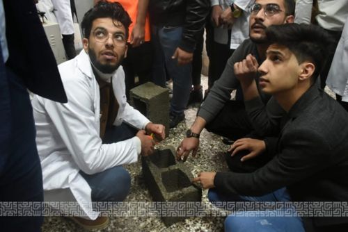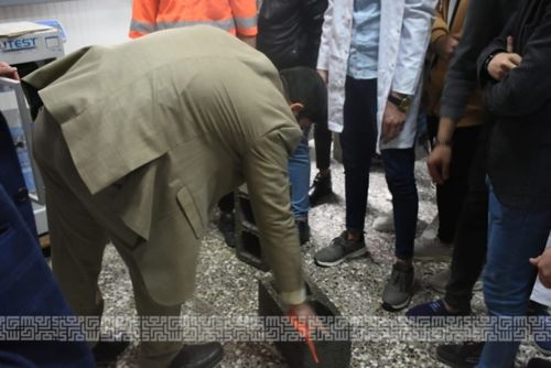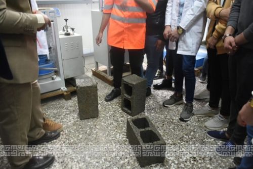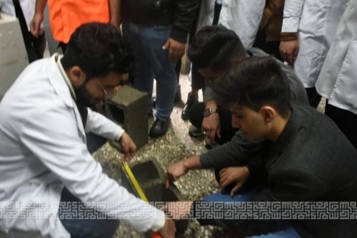 جانب من المحاضرة العملية في قسم الهندسة المدنية في مختبر مواد انشائية لطلبة المرحلة الاولى باشراف المهندس محمد خالد والمهندسة رنا خالد.