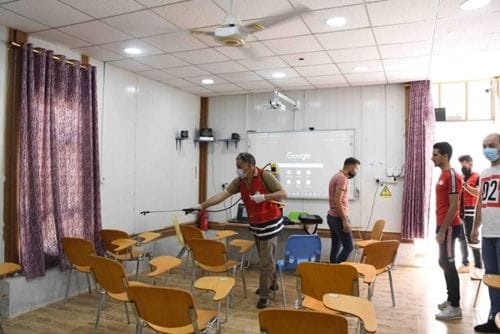 جامعة سامراء – كلية التربية البدنية تتعاون مع جمعية الهلال الأحمر العراقي حول جائحة كورونا