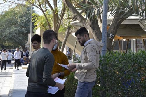 طلاب كلية العلوم الإسلامية يشاركون بالحملة التوعوية حول اليوم العالمي للقضاء على العنف ضد المرأة (تحت شعار احميها من العنف).