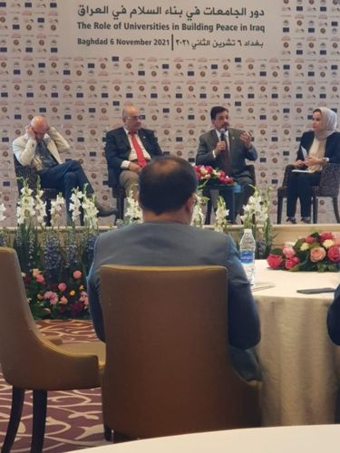 شارك عميد كلية العلوم الاسلامية في جامعة سامراء الاستاذ الدكتور حسن احمد الجواري في المؤتمر العلمي تحت عنوان (دور الجامعات العراقية في بناء السلام) الذي أقيم في العاصمة بغداد يوم امس السبت الموافق 6\11\2021 وعلى اروقة فندق بابل الدولي وبحضور معالي وزير الثقافة والسياحة الدكتور حسن ناظم وممثل معالي وزير التعليم العالي والبحث العلمي الدكتور علاء عبد الحسن و مستشار الشؤون الاستراتيجية في مستشارية الأمن القومي سعيد الجياشي, وبالتعاون مع جمعية الأمل العراقية وبالتنسيق مع الاتحاد الأوربي ومنظمة دانمشن الدنماركية وجهات اكاديمية ومنظمات مجتمع مدني, وبحضور الكوادر العليا من وزارة التعليم والثقافة وعمداء الكليات واساتذة ومختصين في مجال السلام من الجنسية العربية والاجنبية.