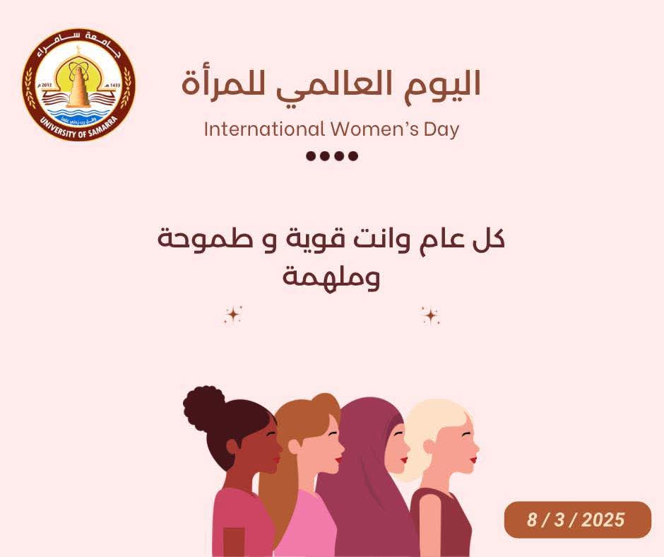 جامعة سامراء تهنئ ملاكات الجامعة النسوية وطالباتها بمناسبة (اليوم العالمي للمرأة) الموافق 8 آذار من كل عام.