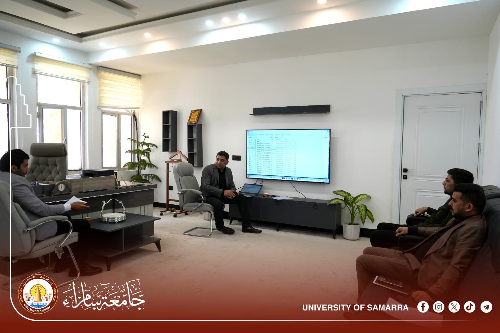 وترأس الاجتماع الأستاذ الدكتور (غسان فارس عطية) -رئيس اللجنة- بحضور بعض مديري الأقسام الإدارية، ومجموعة من موظفي الجامعة أعضاء اللجنة، والمكلفين بجمع البيانات وفق المحاور المطلوبة.