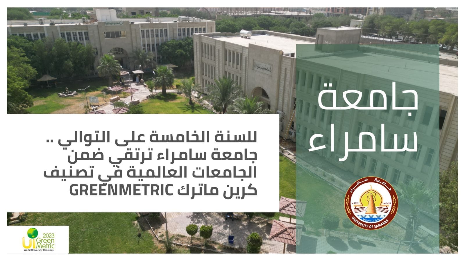 للسنة الخامسة على التوالي… جامعة سامراء ترتقي ضمن الجامعات العالمية في تصنيف كرين ماترك GreenMetric