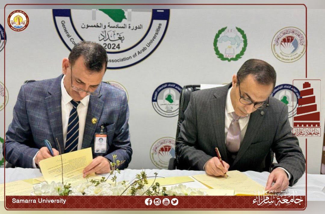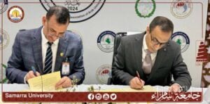 وقع الاستاذ الدكتور صباح علاوي السامرائي (رئيس جامعة سامراء)، ونظيره الاستاذ الدكتور عبدالناصر محمد زيد (رئيس جامعة النجاح الوطنية الفلسطينية)، مذكرة تعاون علمي من اجل تعضيد مسار التكاتف والتواصل والمصير المشترك بين الجامعتين.