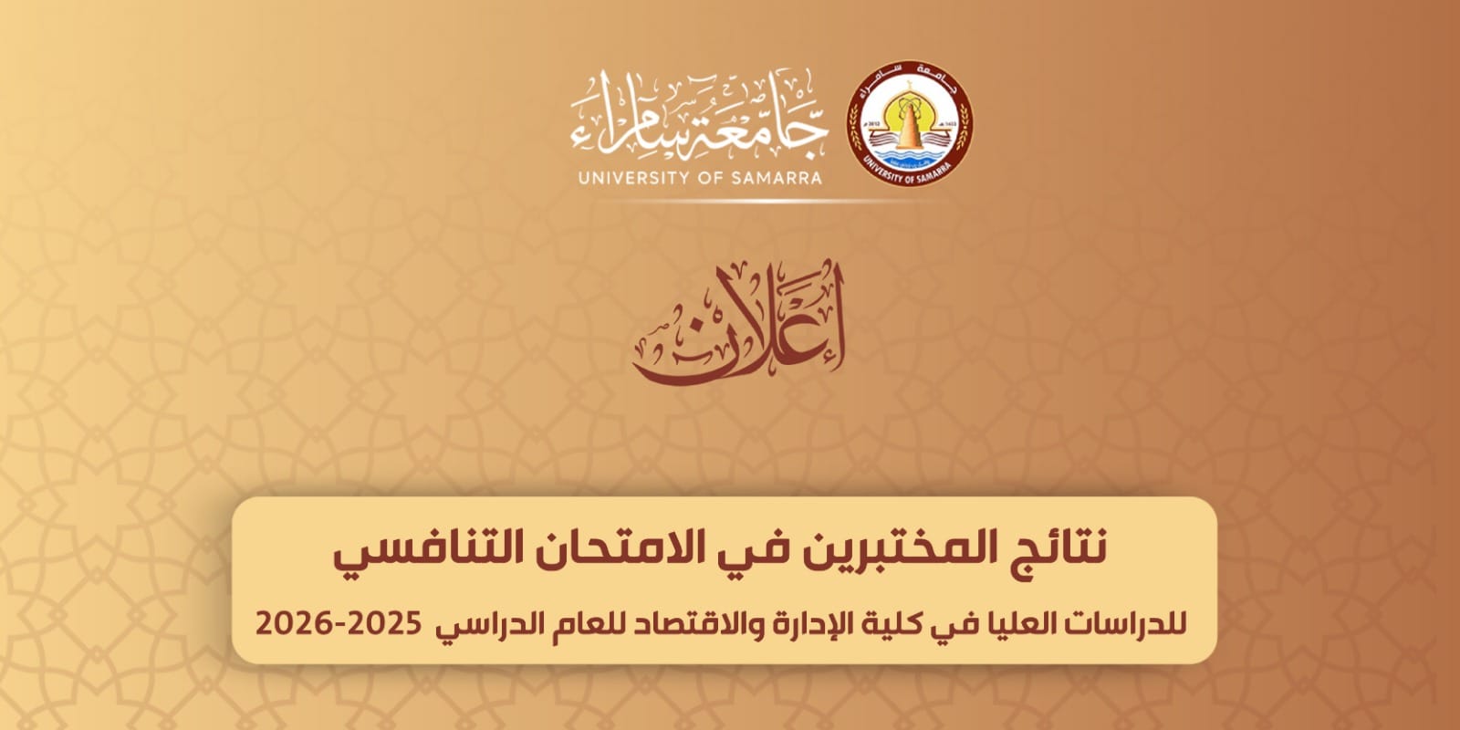 نتائج المختبرين لدراسة الماجستير في كلية الإدارة والاقتصاد للعام ٢٠٢٥-٢٠٢٦