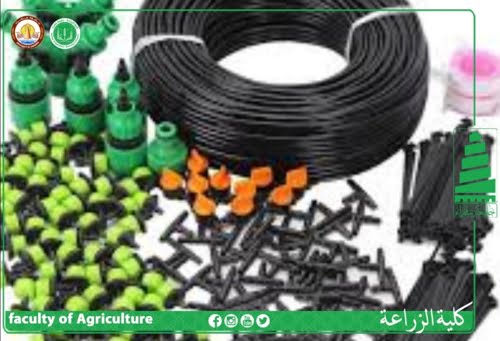 5) شبكة أنابيب التوصيل: Piping system :وهي عبارة عن خطوط نقل الماء بعد خلطها بالأسمدة و تنقيتها من الشوائب الى مكان تواجد كل نبات بكمية محددة بواسطة نقاط محدد التصريف يتحكم فية عملية الضغط في الشبكة .