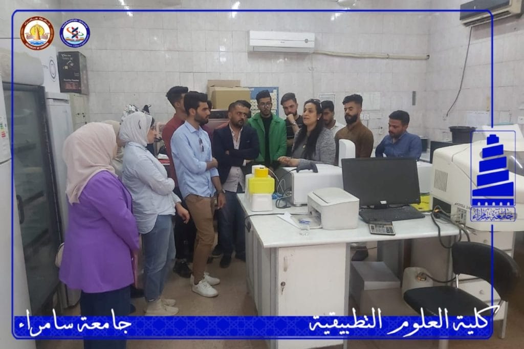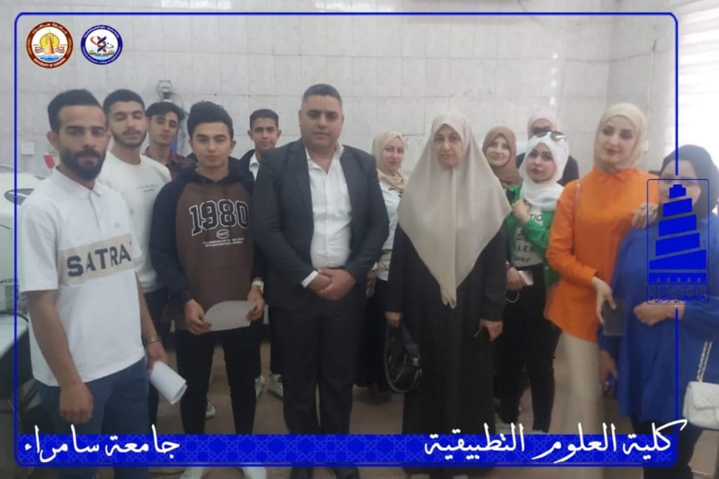 زار طلبة الدراسات المرحلة الثالثة في كلية العلوم التطبيقية بجامعة سامراء و بإشراف الأستاذ المساعد الدكتورة أسماء عيسى محمود والاستاذ المساعد مروان قحطان جاسم والمدرس المساعد غفران شهاب احمد والمدرس المساعد مروان عدنان محمود المركز الوطني للعلاج وبحوث السكري في الجامعة المستنصرية وذلك في يوم الاثنين الموافق ٦ آذار ٢٠٢٣ للاطلاع على عمل المختبرات والأجهزة فيه لعمل التحليلات المختبرية.