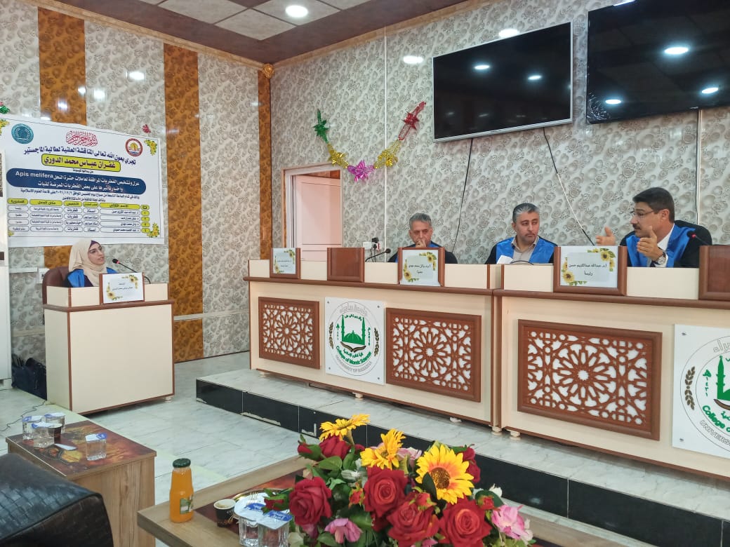 شارك الاستاذ المساعد الدكتور (وائل محمد مهدي) المعاون العميد للشؤون العلمية والدراسات العليا في كلية العلوم التطبيقية والتدريسي في قسم التقانات الاحيائية مناقشة رسالة ماجستير في قسم علوم الحياة في كلية التربية بجامعة سامراءحيث كانت رسالة الماجستير المقدمة من قبل الطالبة في القسم ( غفران عباس محمد )، والموسومة بـ ” عزل وتشخيص الفطريات المرافقة لعاملات حشرة النحل Apis emlifera واختبار تاثيرها على بعض الفطريات الممرضة للنبات “.