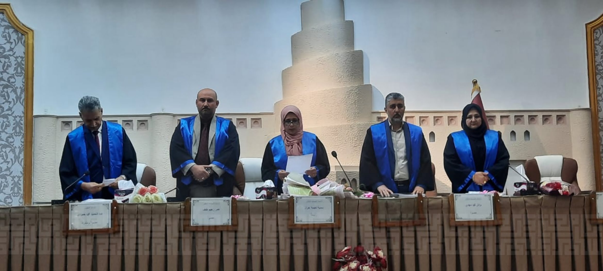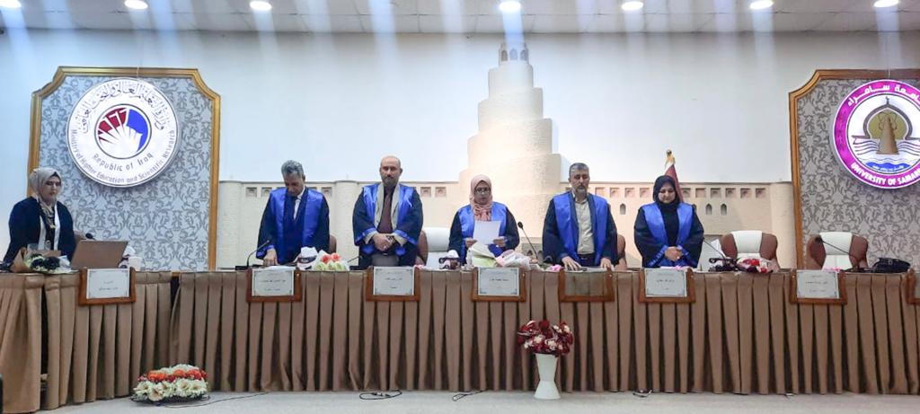 (التشخيص المظهري والجزيئي للفطريات المائية المتواجدة في نهر دجلة لبعض مناطق صلاح الدين وتقدير كفاءتها الانزيمية) وذلك يوم الثلاثاء الموافق ٢٠٢٢/٤/١٢ في تمام الساعة التاسعة صباحاً في قاعة المعتصم – كلية التربية – جامعة سامراء، وقد تألفت اللجنة من الذوات.