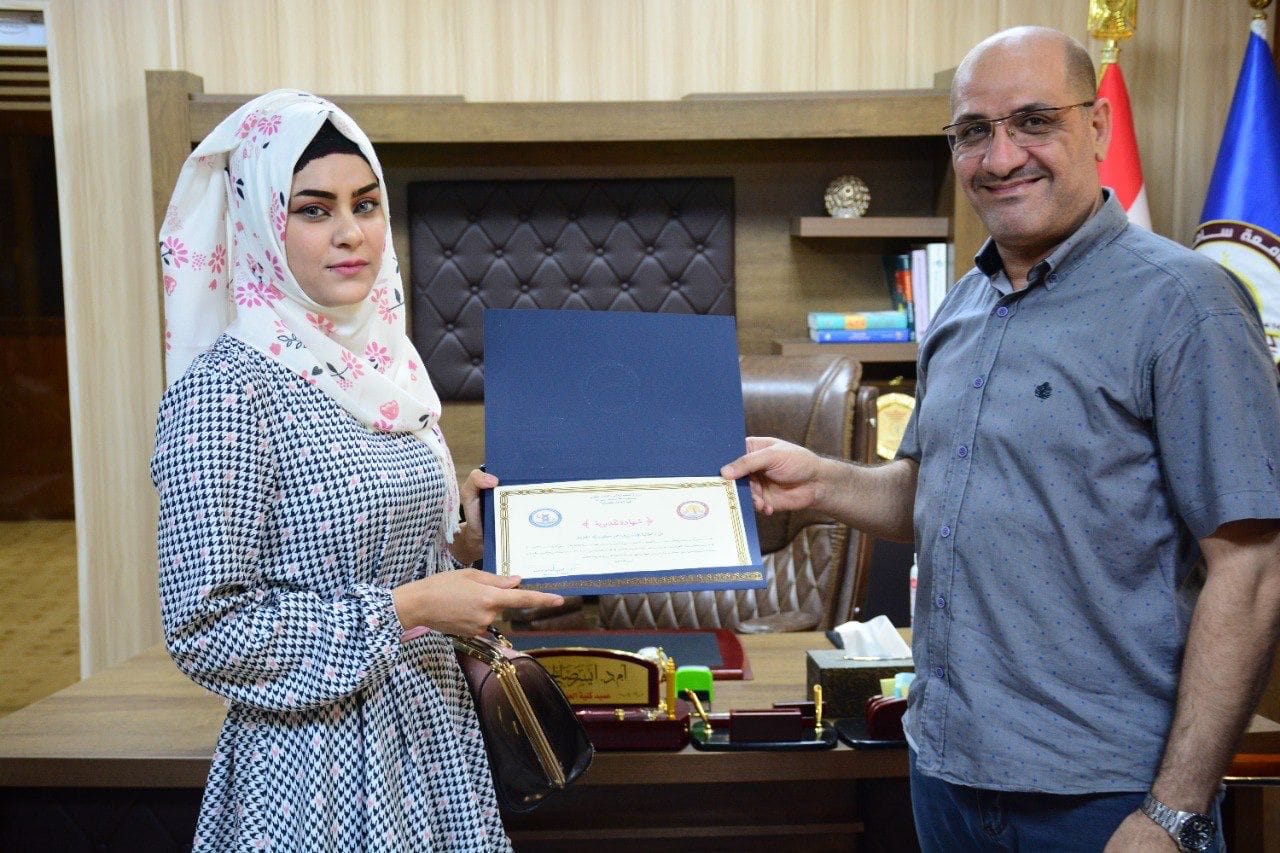 أشرفَ السيد عميد كلية الآداب أ. م. د أحمد عزاوي محمد، على رسالة ماجستير في قسم اللغة العربية بكلية التربية/ جامعة سامراء، والموسومة بـ ” تداخل الفنون في قصص محسن الرملي “، والمقدمة من قبل الطالبة ( نور عبد الغني عبد الرحمن )، وذلك في يوم الاربعاء الموافق ١٢ كانون الثاني ٢٠٢٢ في قاعة المعتصم بالكلية.