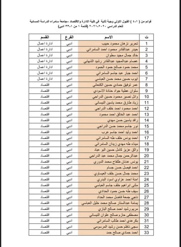 مع #الملاحظة اننا سنقوم بتعويض كل من لا يباشر لغاية يوم الخميس المصادف 28-1-2021 ويكمل إجراءات التسجيل من قوائم الاحتياط كما سيكون لهم الأسبقية في حالة توسعة القبول ان شاء الله .