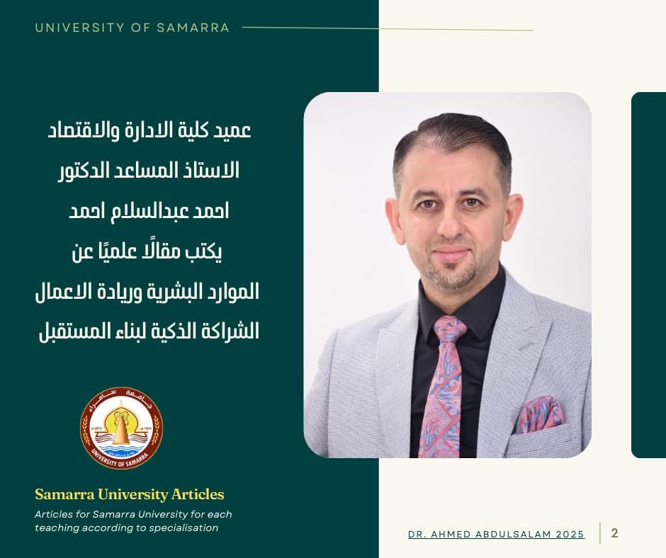 عميد كلية الإدارة والاقتصاد الاستاذ المساعد الدكتور احمد عبدالسلام احمد يكتب مقالًا علميًا عن ريادة الأعمال الموارد البشرية وريادة الأعمال الشراكة الذكية لبناء المستقب