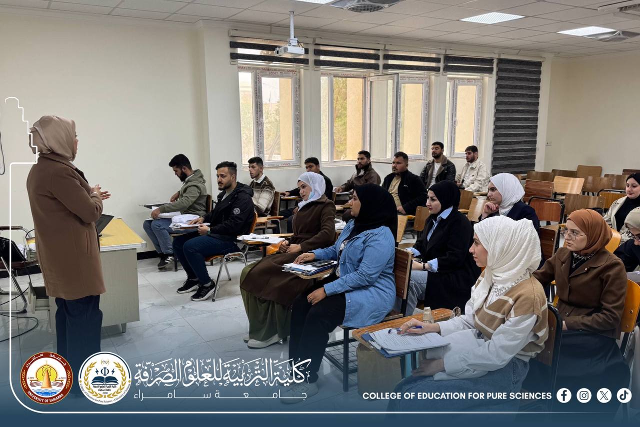 نظّم قسمُ الكيمياءِ في كليةِ التربيةِ للعلومِ الصرفة – جامعة سامراء دورةً علميةً عن «أُسُس وتقنيات معالجة المياه في العمليات الصناعية»، قدّمتها المدرسةُ المساعدةُ هدى مطر إبراهيم.