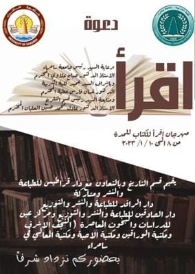 اعلن قسم التاريخ في كلية التربية – بجامعة سامراء عن اقامة مهرجان ( اقرأ للكتاب ) ، بالتعاون مع دار قراطيس للطباعة والنشر وبمشاركة مجموعة من دور النشر وللمدة من ٨-١٠ /٢٠٢٣/١ .