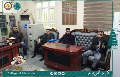 عقدَ قسم الفيزياء في كلية التربية – بجامعة سامراء برئاسة الأستاذ المساعد « حسام عبدالحميد حسين » رئيس القسم وبحضور كافة أعضاء الهيئة التدريسية يوم الأربعاء الموافق ٤/ ١/ ٢٠٢٣ ، وان اهم النقاط التي تمت مناقشتها :