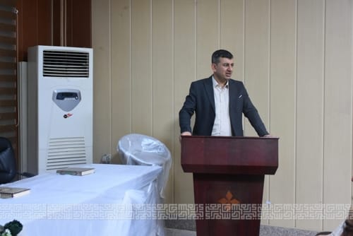 حضر السيد معاون العميد للشؤون العلمية د.ياسر محمد صالح مناقشة طالبة ماجستير فائزة علي حسين قسم اللغة العربية الموسومة شرح الكافية لعلاء الدين علي بن محمد البسطامي الشهير بــ(منصفك ) (ت 875هـ) من موضوع الاسماء الستة الى نهاية العدد -دراسة وتىحقيق )