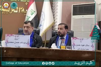 الأستاذ المساعد الدكتور يوسف حسن محمد يُناقش رسالة ماجستير في الجامعة العراقية