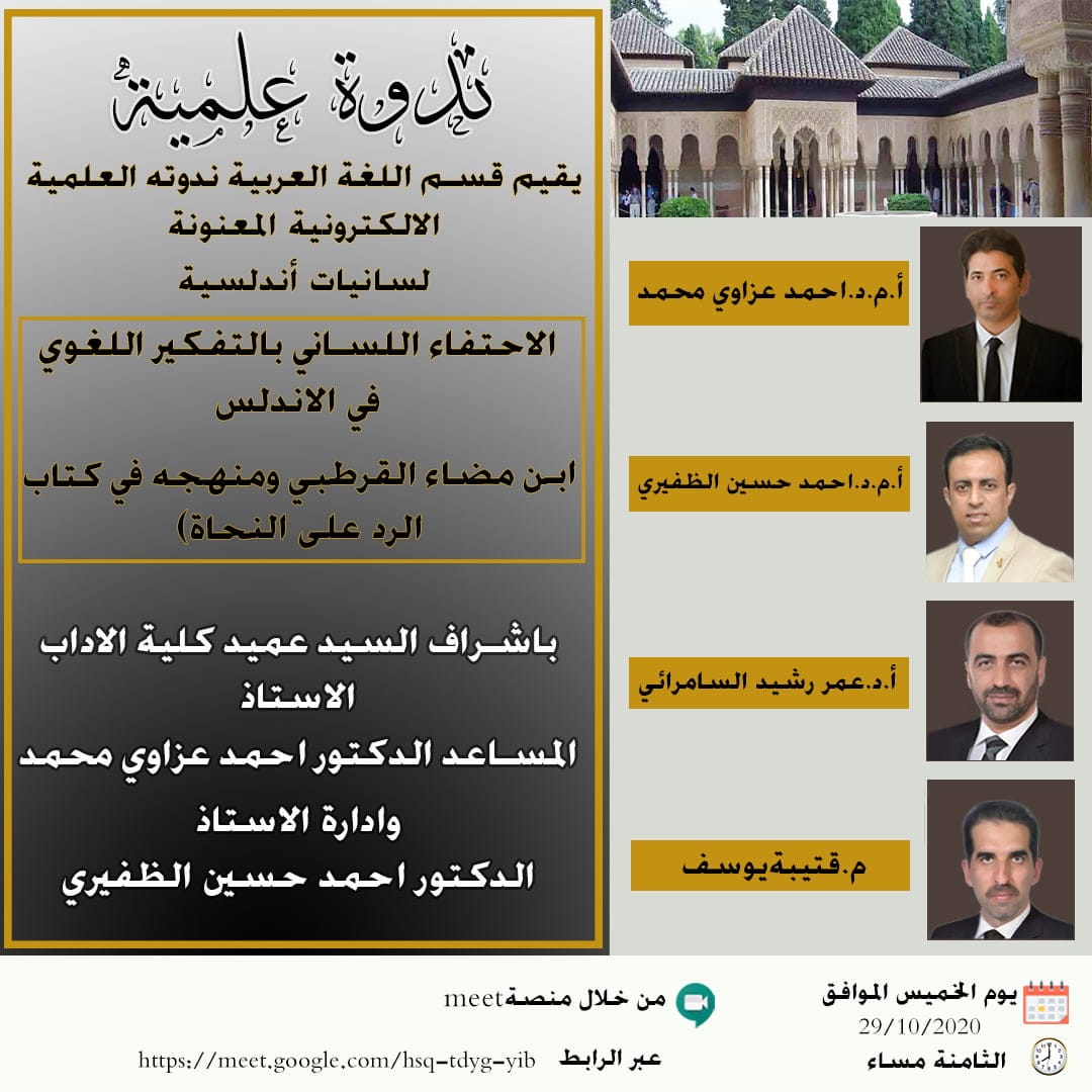 اليوم الخميس الموافق 2020/8/27 الساعة التاسعة مساءً عبر تطبيق Zoom رمز الدخول 76054277484