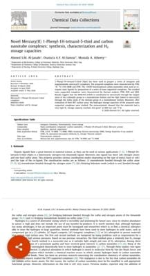 نشر التدريسي في جامعة سامراء _ كلية التربية _ قسم الكيمياء ( م.م. أسامة أحمد ياسين ) بحث علمي بعنوان Novel Mercury(II) 1-Phenyl-1H-tetrazol-5-thiol and carbon nanotube complexes:synthesis, Characterization and H2,Storage Capacities في مجلة عالمية رصينة ذات معامل تأثير عالي ضمن مستوعبات سكوبس وهي مجلة Chemical Data Collections المصنفة Q2
