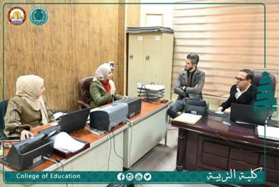 شعبة شؤون الطلبة والتسجيل في كلية التربية تستقبل لجنة الحاسبة المركزية برئاسة جامعة سامراء واثنت على جهودهم المتميزة بإصدار صحة الصدور الالكترونية اذ اطلعت اللجنة على طبيعة عمل صحة الصدور الالكترونية الخاصة بخريجي كلية التربية والتقت اللجنة المكلفة بمتابعة صحة الصدور ( QR ) بمسؤول شعبة شؤون الطلبة والتسجيل السيد « محمد علي احمد » والكادر المسؤول عن ادخال البيانات وارشفتها الكترونيًا واشادة اللجنة بعمل الشعبة وسرعة انجازها لصحة الصدور الالكترونية .