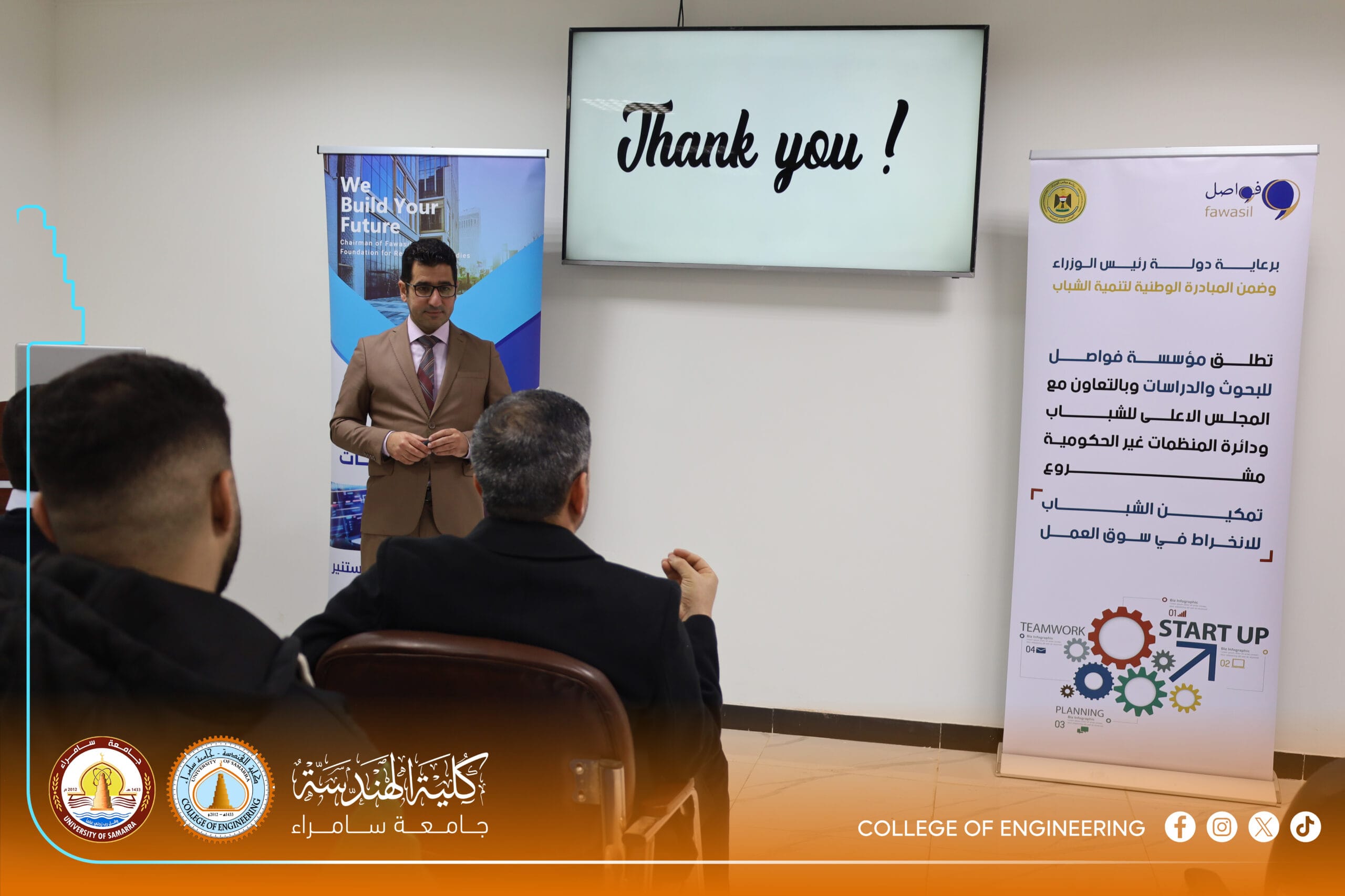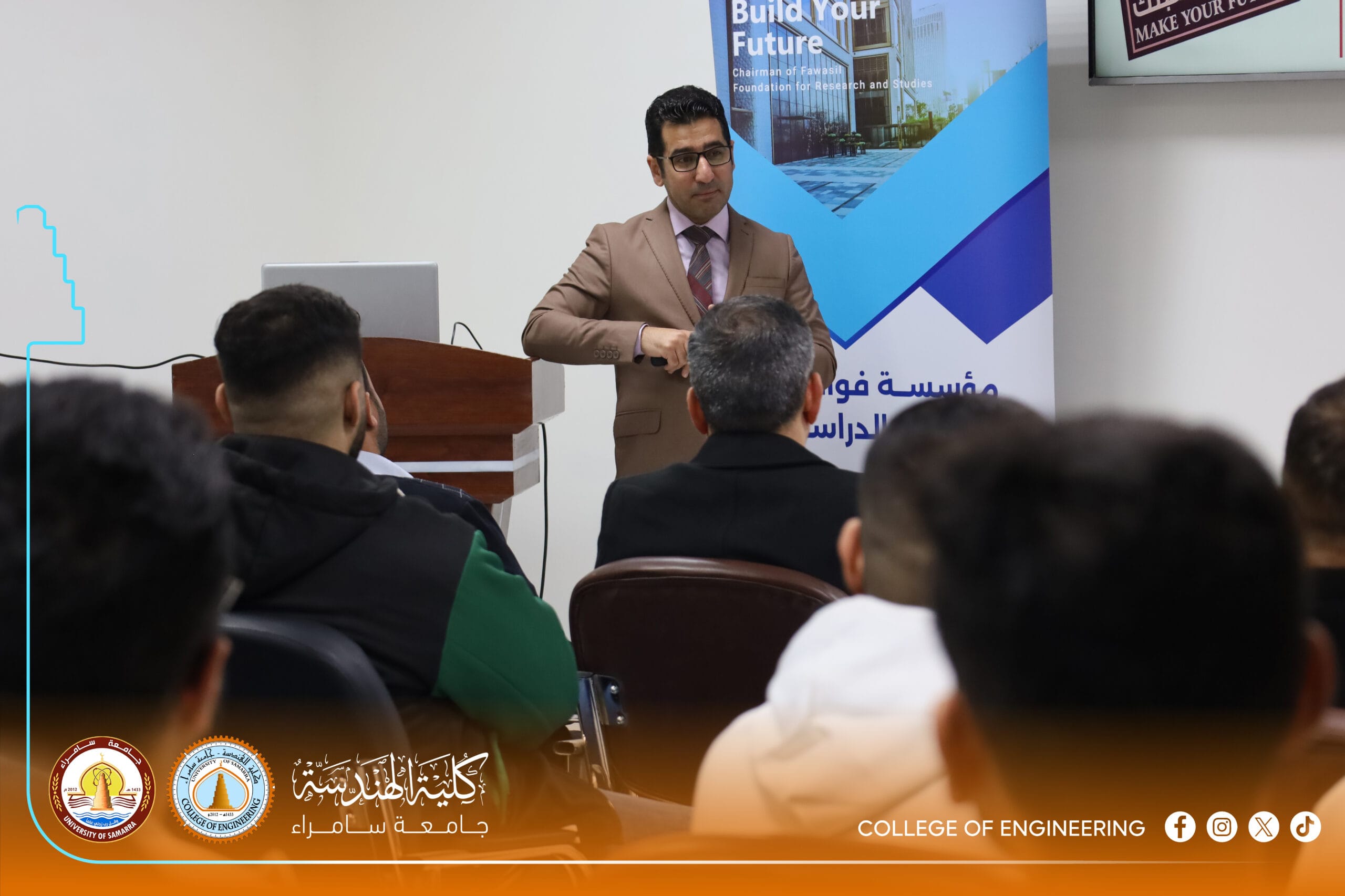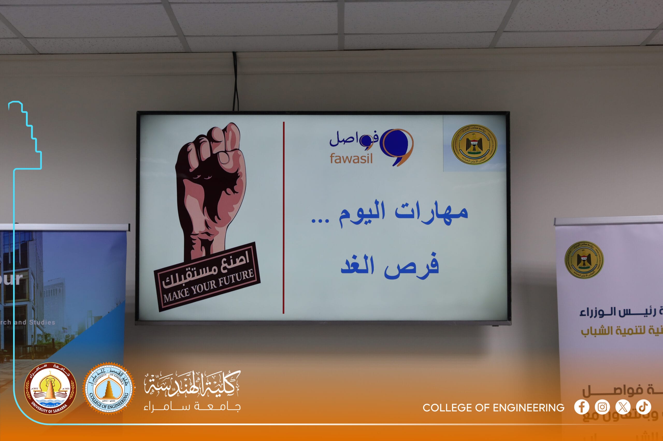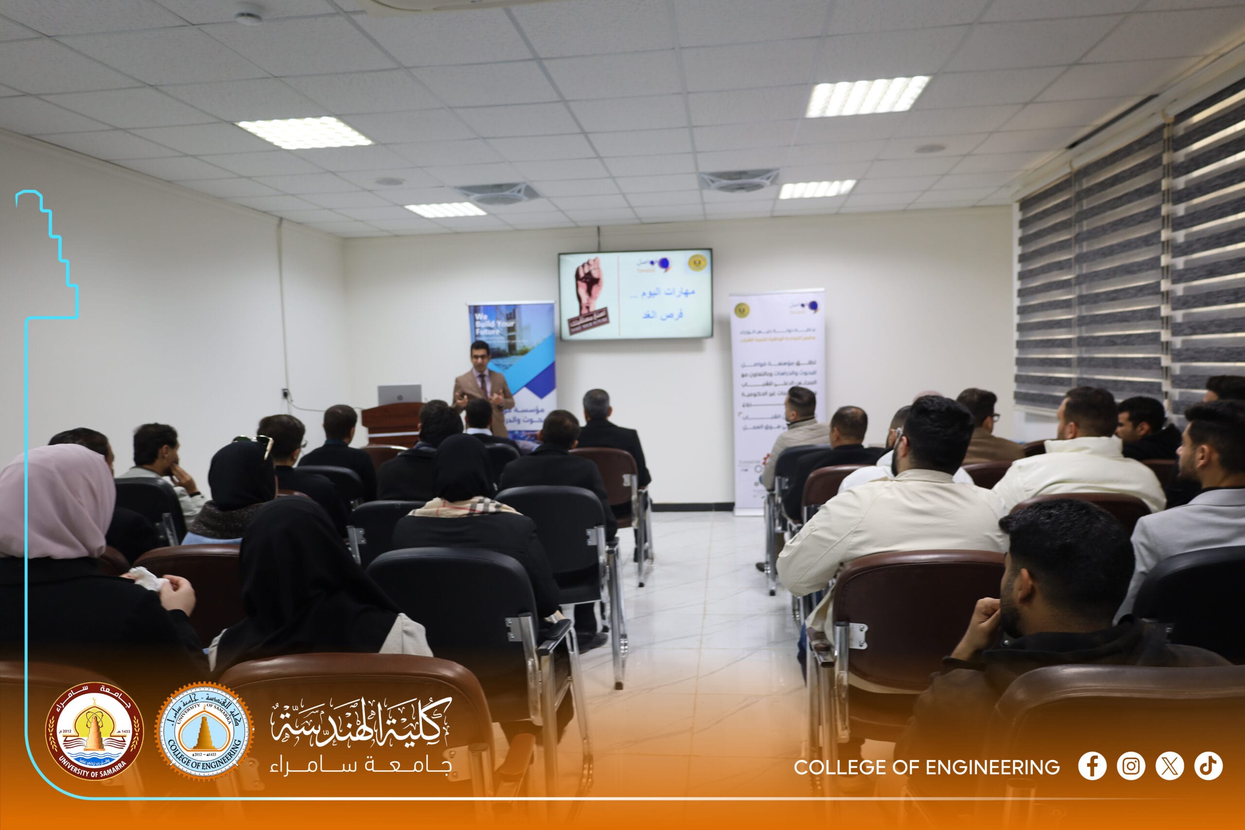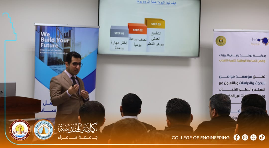 استضافت قاعة التعليم المستمر في كلية الهندسة بجامعة سامراء ندوة توعوية تخصصية بعنوان “مهارات اليوم … فرص الغد”، قدمها المهندس ياسر مطلك عبدالله، رئيس مؤسسة فواصل للبحوث والدراسات، وذلك ضمن مساعي تعزيز الوعي المهني وربط المخرجات الأكاديمية بالواقع العملي.