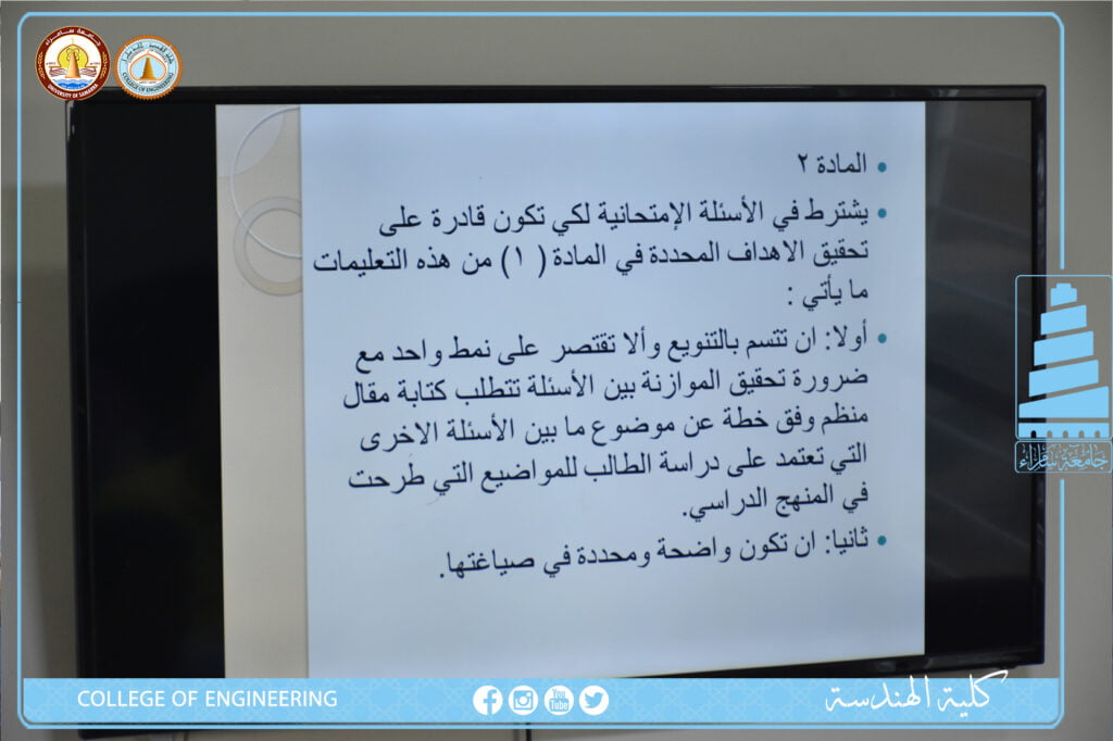 كلية الهندسة تنظم دورة علمية بعنوان”دليل ادارة الامتحانات الجامعية الاسئلة، التصحيح، المراقبات”