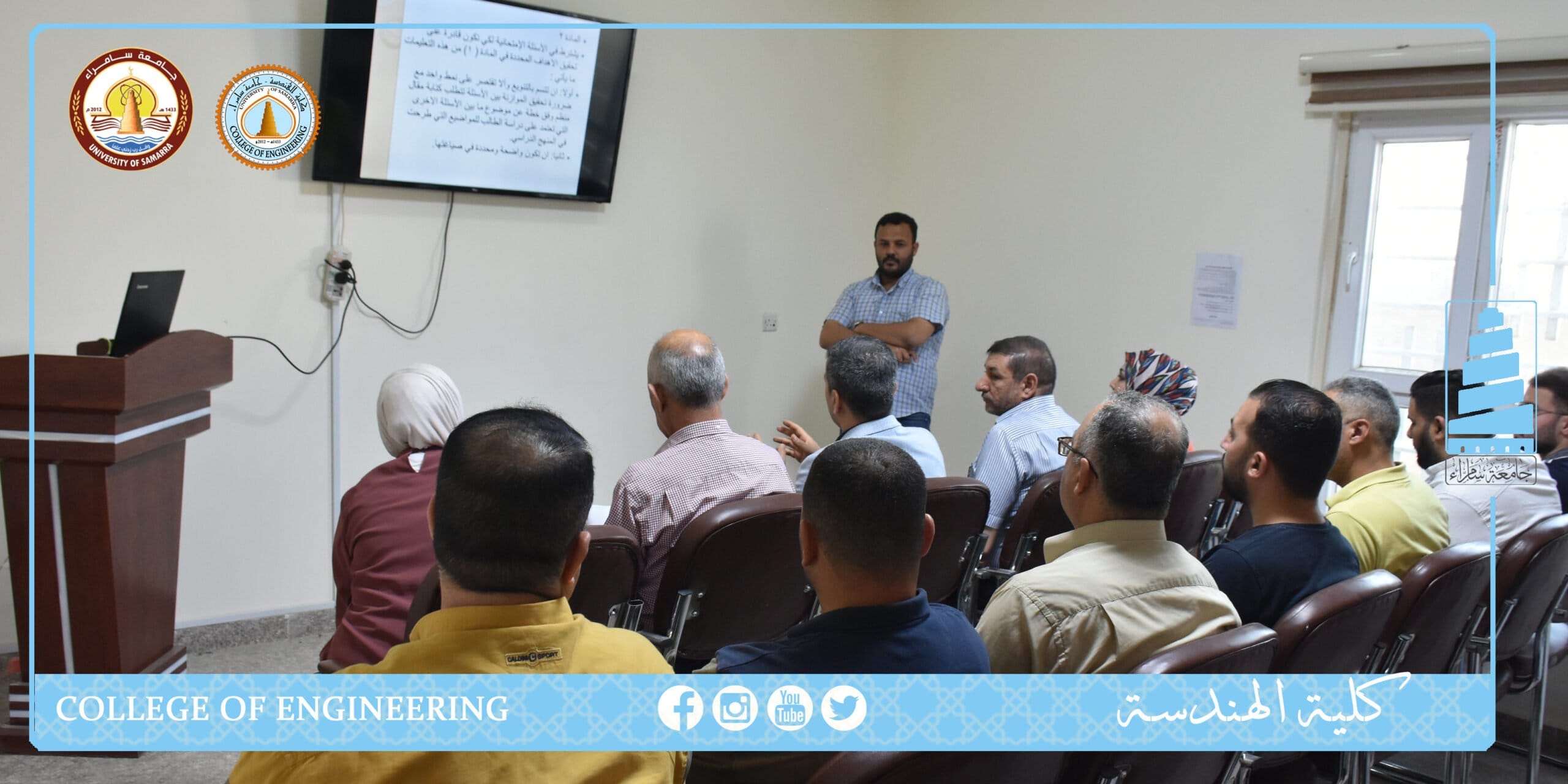 نظمت كلية الهندسة_جامعة سامراء دورة علميةبعنوان “دليل ادارة الامتحانات الجامعية_الاسئلة، التصحيح، المراقبات” في يومي الاربعاء والخميس الموافقين الثامن عشر والتاسع عشر من الشهر الحالي، قدمها المدرس احمد محمد احمد معاون العميد للشؤون العلمية في كلية الهندسة