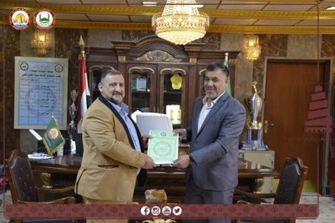 الأستاذ الدكتور( حسن الجواري) يُكرِّم أحد أساتذة جامعة تكريت لتعاونه العلمي