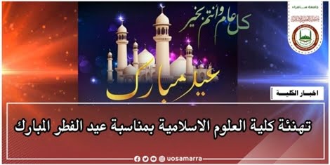 تهنئة كلية العلوم الاسلامية بمناسبة عيد الفطر المبارك.