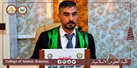 ناقش قسم الشريعة  في كلية العلوم الاسلامية بجامعة سامراء , رسالة ماجستير بعنوان (شرح الوقاية لمحمد بن مصطفى مصلح الدين القوجوي الشهير بشيخ زارده “ت:951هجرية” من باب جناية الرقيق والجنابة عليه الى نهاية المخطوط – دراسة وتحقيق).
