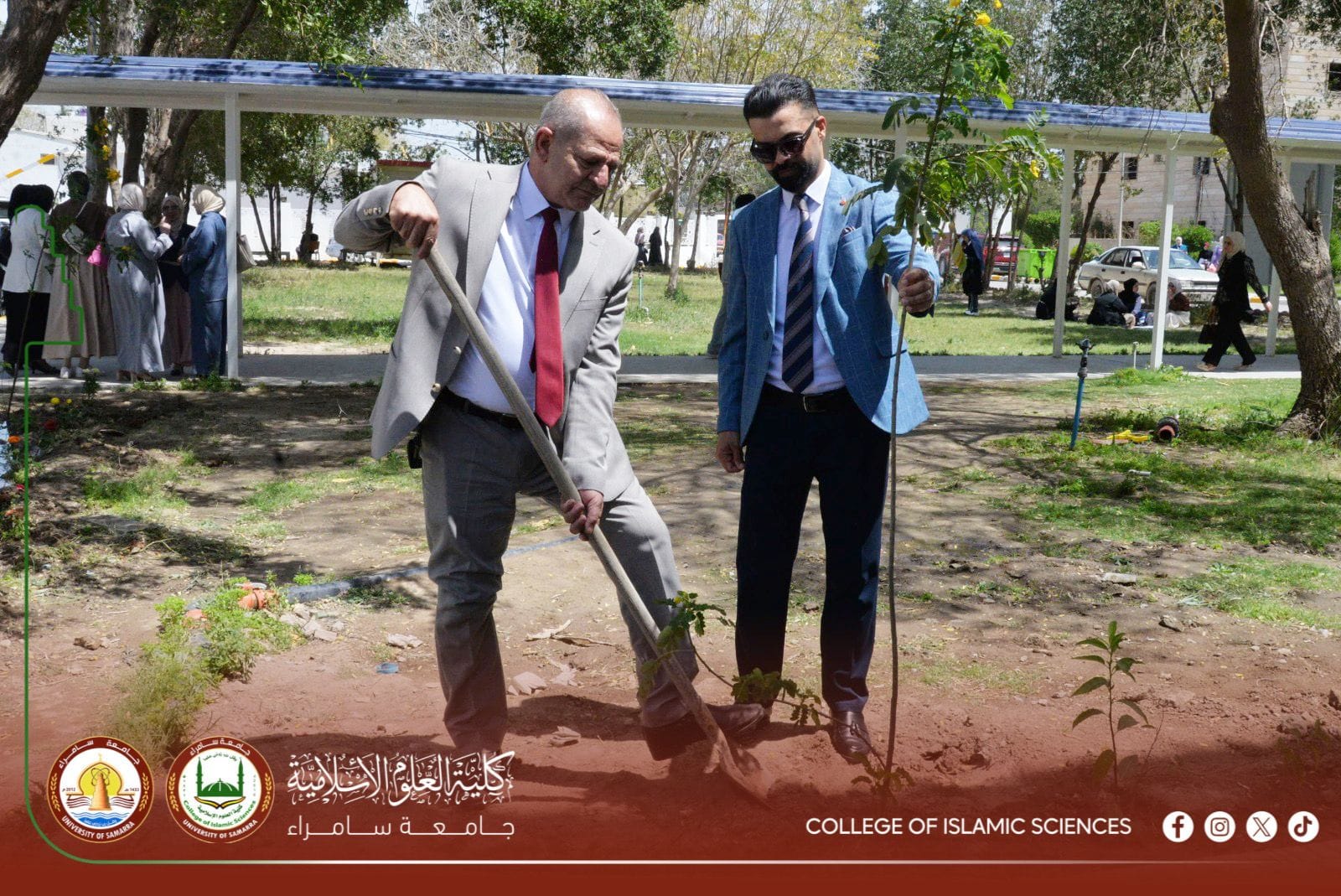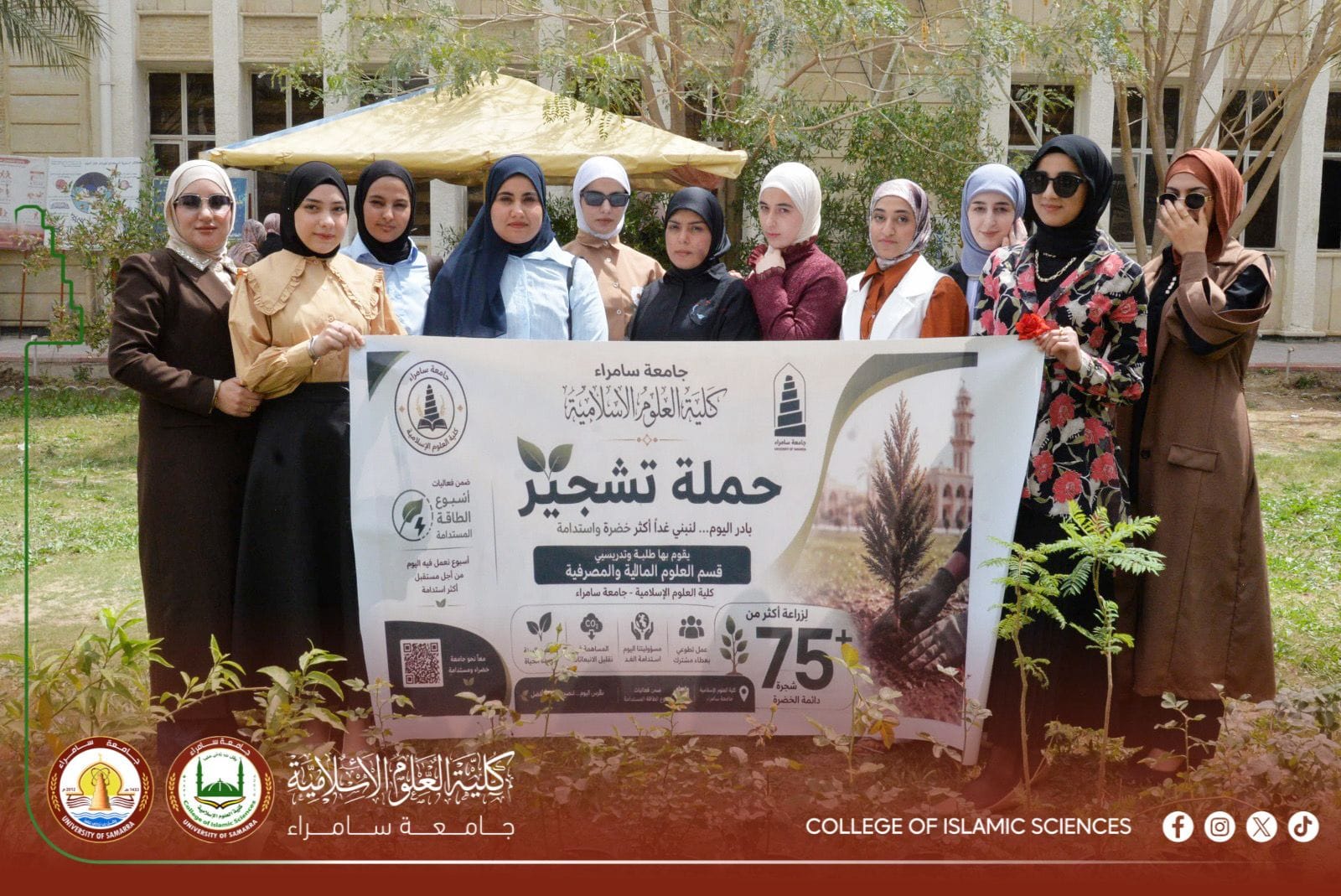 ضمن فعاليات أسبوع الطاقة المستدامة، نظّم قسم العلوم المالية والمصرفية الإسلامية في كلية العلوم الإسلامية بجامعة سامراء حملة تشجير تطوعية، بمشاركة فاعلة من تدريسيي القسم وطلبته، تجسيدًا لالتزام الكلية بدعم المبادرات البيئية وتعزيز مفاهيم التنمية المستدامة. وتضمّنت الحملة زراعة أكثر من (75) شجرة دائمة الخضرة في حدائق الكلية، بهدف توسيع المساحات الخضراء، وتحسين البيئة الجامعية، وترسيخ الوعي البيئي لدى الطلبة بوصفه جزءًا من المسؤولية المجتمعية للمؤسسات الأكاديمية. وأكد المشاركون في الحملة أن هذه المبادرة تنسجم مع التوجهات الجامعية الرامية إلى نشر ثقافة الاستدامة والمحافظة على الموارد الطبيعية، فضلًا عن توظيف الأنشطة الميدانية في بناء وعي طلابي يعزز السلوك البيئي الإيجابي. وشهدت الفعالية مشاركة واسعة من طلبة القسم، عكست روح التعاون والانتماء، وحرصهم على الإسهام في المبادرات التي تخدم الحرم الجامعي وتدعم الأهداف البيئية والتنموية.