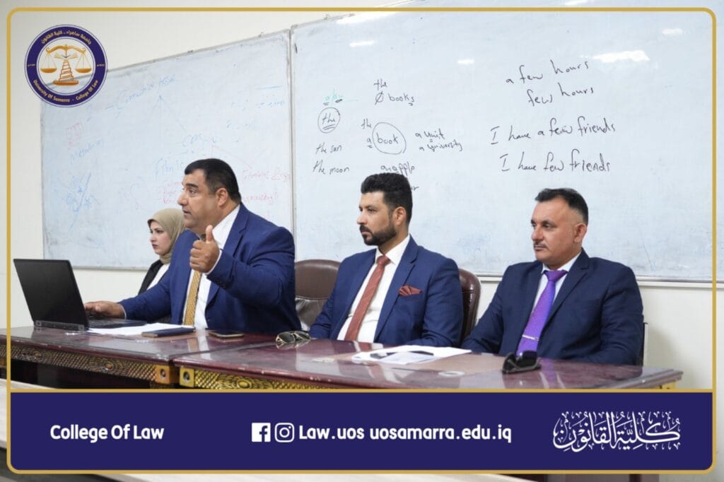 حيث ألقى رئيس قسم القانون المدرس الدكتور حاتم فائق مهدي والمدرس الدكتور برزان جياد جاسم . والمدرس المساعد عدنان حميد حماده ندوتهم لطلبة الكلية