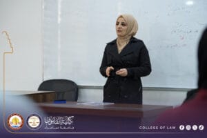 نظّمت كلية القانون في جامعة سامراء، ندوة تثقيفية وفقًا للتوجيهات الوزارية للإحتفاء باليوم الوطني للقران الكريم بعنوان “لغة التشريع في القرآن الكريم”، ألقتها المدرس المساعد (لبنى عبد السلام حمادي)، وبيّنت فيها الخصائص البلاغية والقانونية للتشريع القرآني بوصفه نموذجًا متفردًا في الخطاب القانوني.