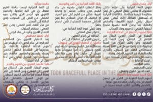 نظمت كلية القانون بجامعة سامراء، نشاطًا علميًا بعنوان “اللغة القرآنية باعتبارها مصدرًا للقيم”، أعدته المدرسة المساعدة (لبنى عبدالسلام حمادي) التدريسية في الكلية.