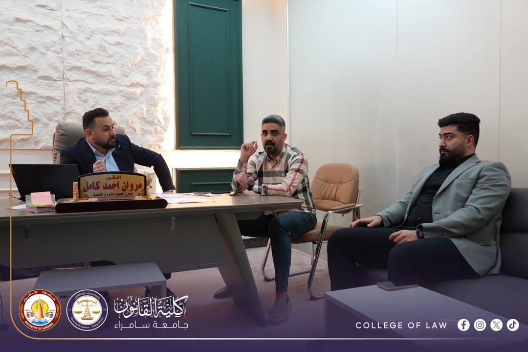 اجتمع المدرس الدكتور (مروان احمد كامل) معاون العميد للشؤون العلمية، في كلية القانون بجامعة سامراء، بعدد من مسؤولين العمل الإداري الخاص بالطلبة.
